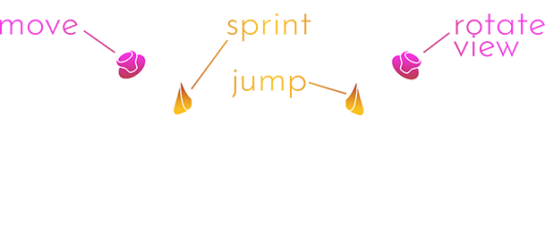 Use the left joystick to move around the worlds, left index trigger to sprint and right index finger to jump. The right joystick will hard rotate your view by 45 degrees. You can move forward in whichever direction that you are looking at in the physical world.
