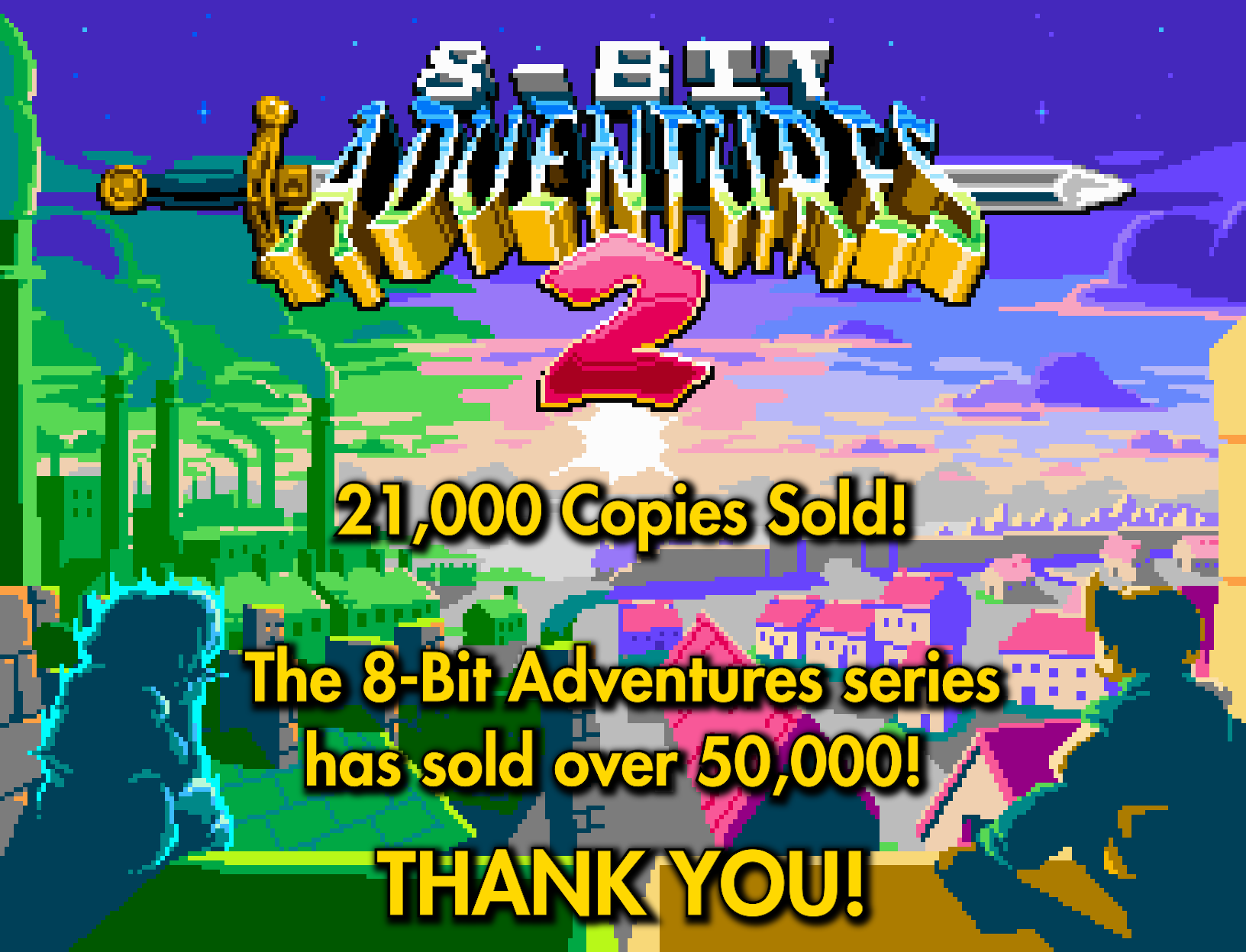 I'm thrilled to announce that 8-Bit Adventures 2 has sold over 21,000 copies! And not only that, the 8-Bit Adventures series as a whole has passed 50,000 units in May 2025 (our 10th anniversary on Steam) 🥳