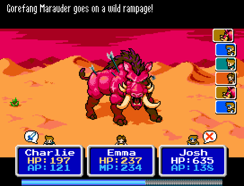 - Fixed (or at least, greatly improved) a bug where the Cackling Pyre would get two turns in a row if you had a party of slow characters. This meant that it would detonate the Living Bomb status straight away, unfairly ending the fight. This was done by slowing down the boss, which may make it a little bit easier; but it should fix the issue of a cheap shot.