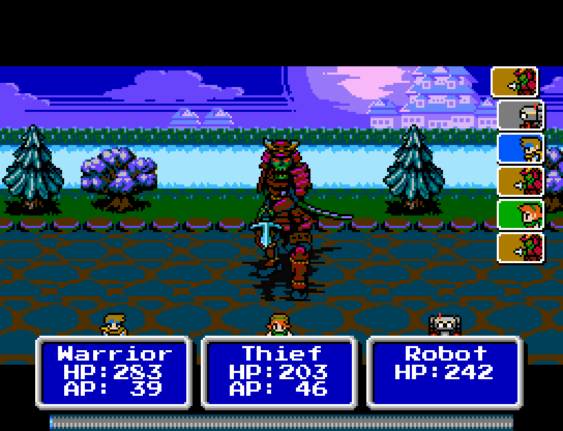 For example, I can put Charlie into a Parry Stance (which lets his block most forms of damage for 3 turns) and then use Warrior’s Decoy ability to make all single-target attacks focus on him. Or swapping slower party members in on faster characters’ turns when I need a quick heal or to use some other ability (e.g. swapping out Thief to bring in Robot so that I can use his Heal Ray to keep the party alive). It feels really satisfying to run rings around normal enemies like this - fun stuff if you love turn-based battle systems!