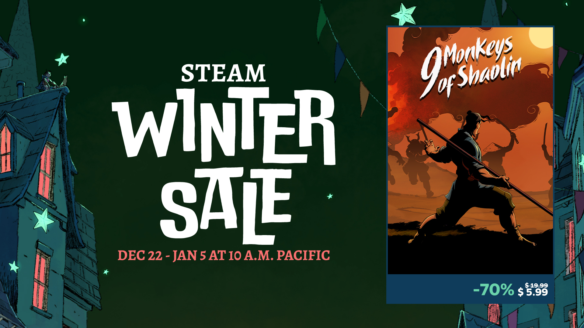 Friends! We are pleased to say that our game has received the largest discount since its release - 70%! All so that you can easily invite your friends to 9 Monkeys of Shaolin and fight bandits together.
