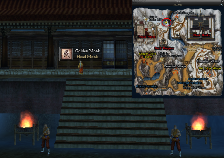 Road to Karma Quest: [event] Blue Snake and Golden Temple (3) NPC: Golden Monk (Head Monk at Golden Temple in Tibet) Condition: Lvl 91+ Defeat Oracle in Black Tower Reward: Green Snake Training Ring, Green Snake Sprout Pendant.
