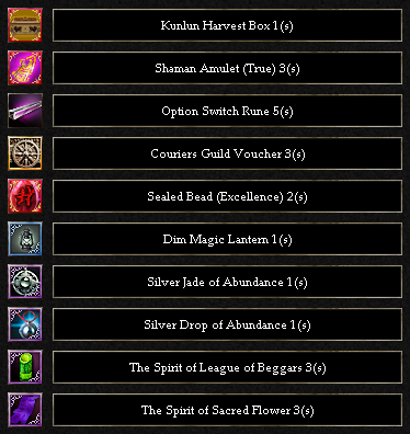 Kunlun Harvest Box contains one of the following items.