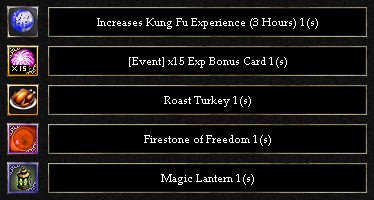 For the duration of this event [event] Escaped Turkey will be spawned in Liaodong, Loulan, Tibet, North Sea, Kulun, Qingdao, and all clan maps and can be killed for a chance to drop Turkey Feathers. Trade them in to Festival Merchant Seo Hwarang for some great rewards.
