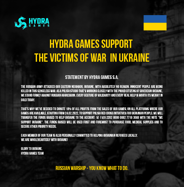 HYDRA GAMES SUPPORT THE VICTIMS OF WAR IN UKRAINE