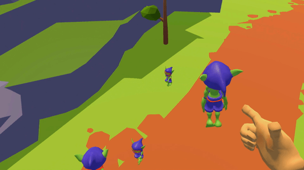 The cartooniness also ties in better with the low-level of violence. There isn't blood or guts, but as a giant you are throwing around goblins and trolls. So making them go poof and disappear when they're hurt ties in nicely with the art style.