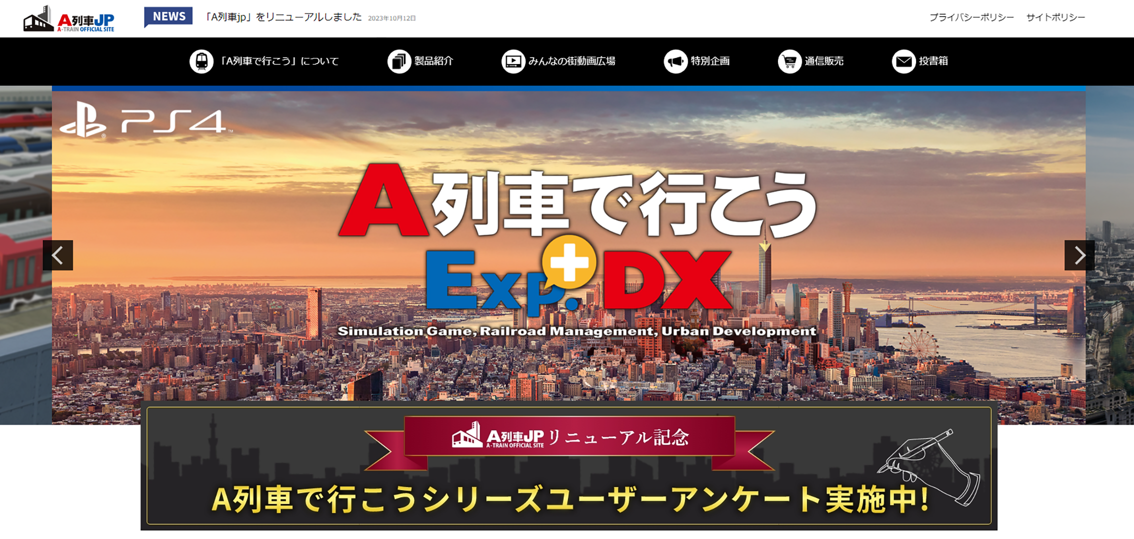 We are pleased to announce the complete renewal of "A Train jp" ( https://www.atrain.jp/ ), the official portal site for the urban development railroad simulation games "A-Train" series.