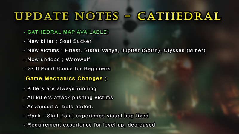 Greetings Crania Games Followers,Our new map Cathedral is available now with a special discount! You can check the update details below!Cathedral Trailer (4K)[previewyoutube="vKADH5N0iAM;full"]Join us on Discord and be a part of development!