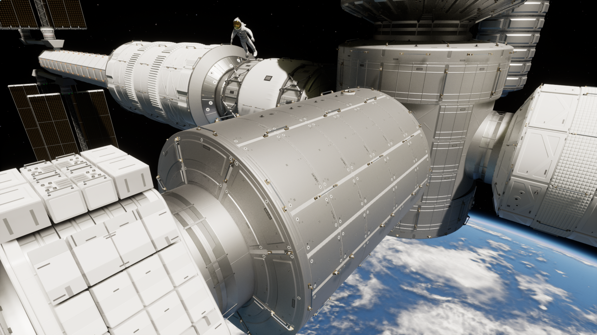 Here are some new screenshots showcasing the exteriors of a new set of space station modules that will be part of the 1.5.0 update: