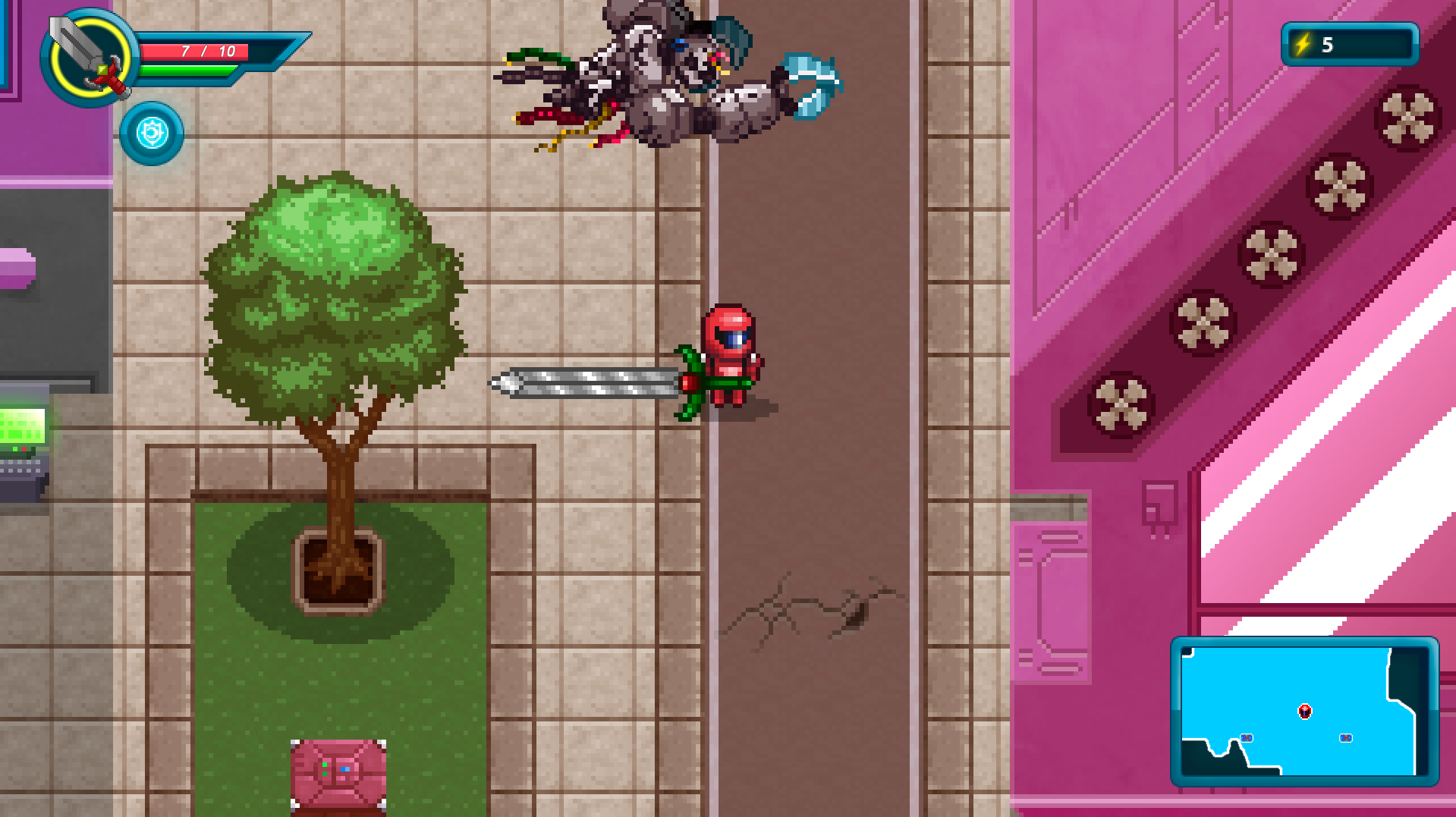 After discarding the Bullet Hell, we re-made the whole city level into a Top Down Shooter level that sort of acted as a tutorial first, then it opens up so you can almost instantly start exploring at your own will.