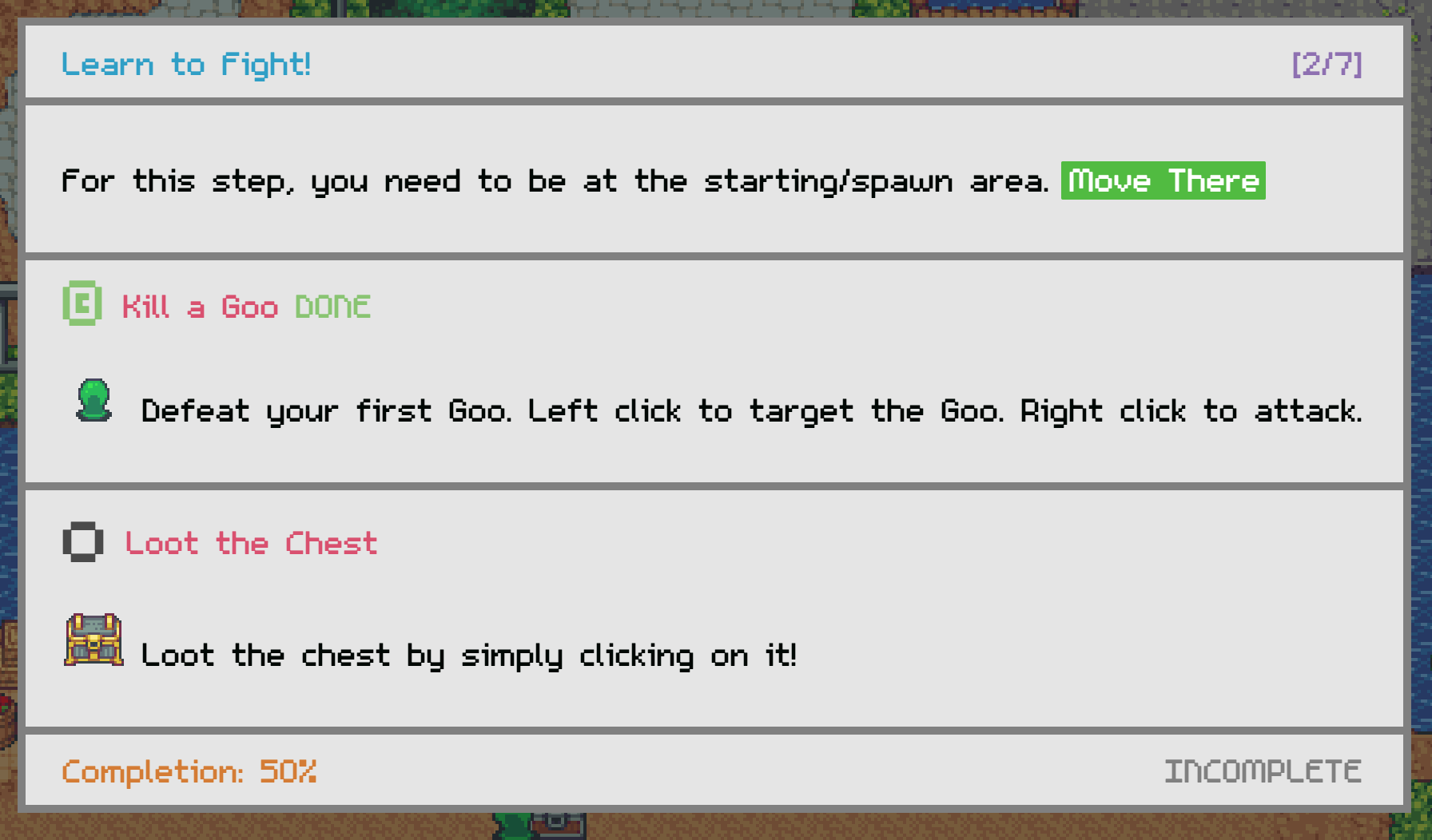 This week was mainly dedicated to working on the new player experience, first character of a new player now emits the aura for 7 days, but it didn't seem like enough - I hoped interaction with non-afk players could improve the experience