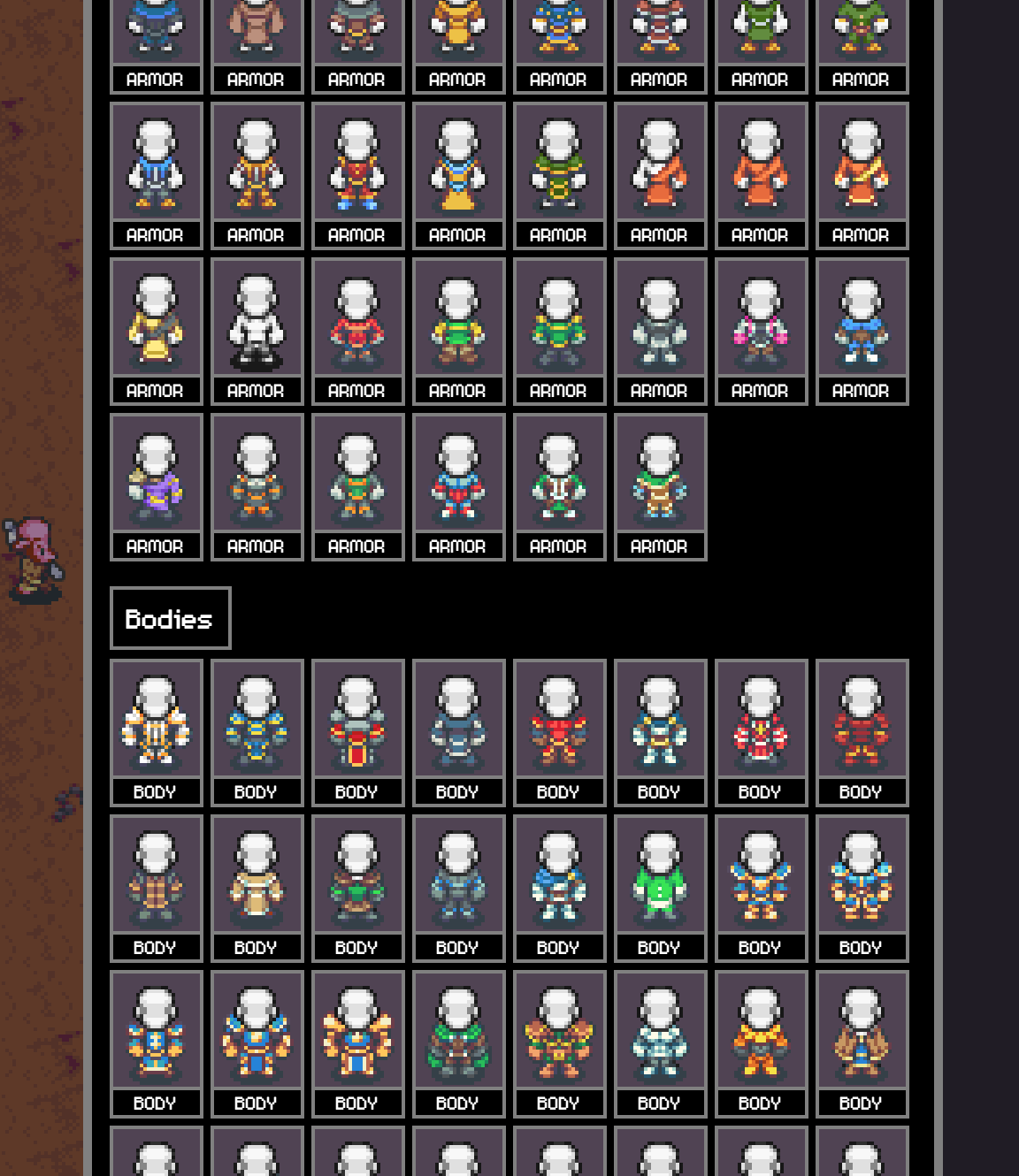 Finally switched to live cosmetics by converting all existing main character sprites, eliminated the gender option and added a secondary default skin color option - along with more masculine and more feminine looks
