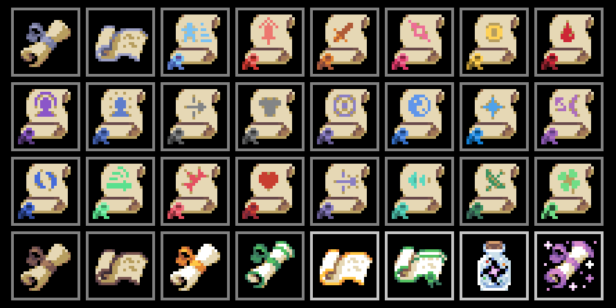 Progressed on the new scroll system, it's not ready yet, couldn't decide on the naming either. Main challenge is to distinguish the new system The property scrolls aren't all too intuitive for newcomers either. Might end up making it easier to understand as well. For property scrolls, the `Stat: 7` attribute indicates a scroll-less item, but for this new "Special" scroll type, unsure how to indicate the availability - anyway I'm rambling, hopefully we'll see the result on Week 75