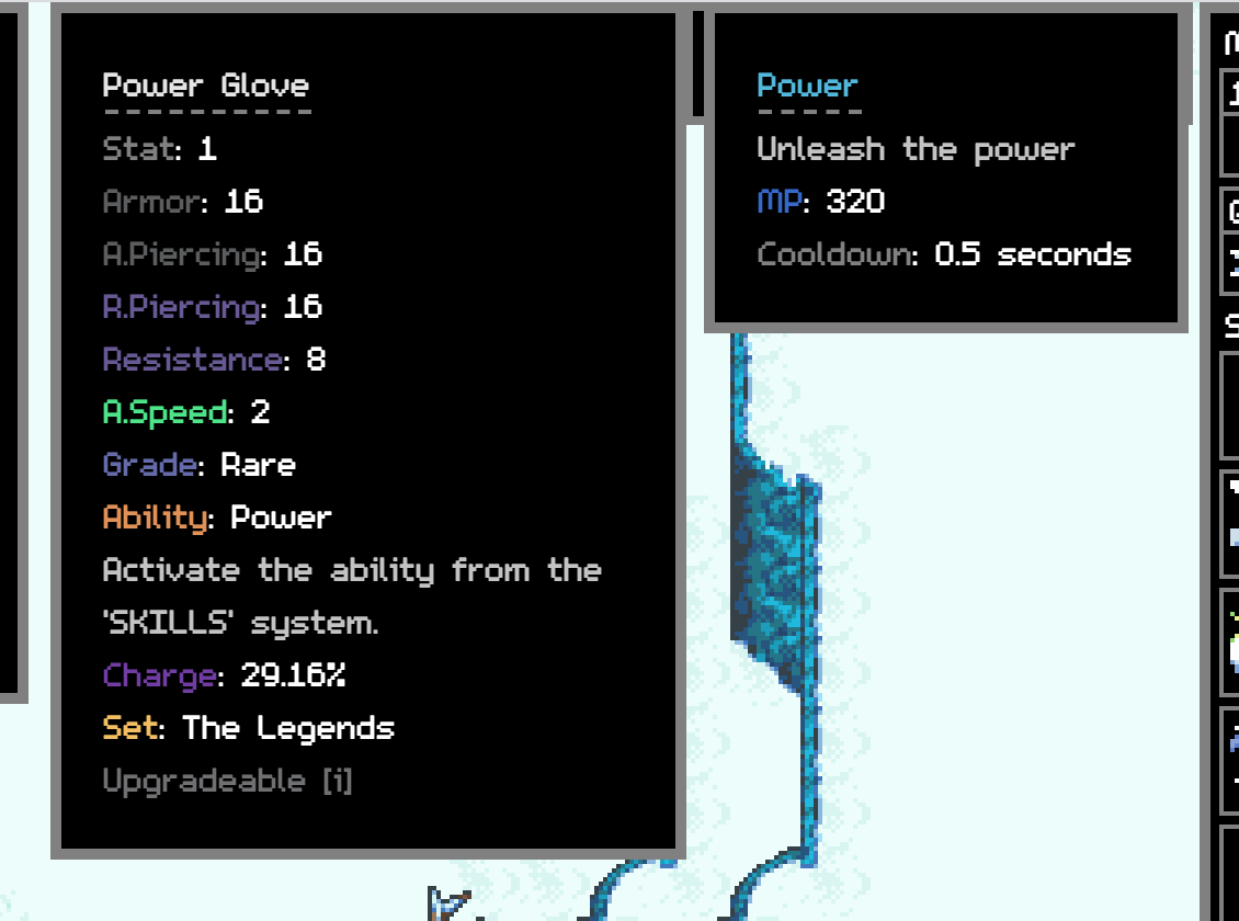 Warp Vest and the Power Glove's received their abilities, Warp Vest can warp to anywhere in the game, yet it takes ~an hour to charge, and after 100% charge, ~20 hours to gain additional charges - Power Glove's take ~120 and ~90 hours to fully charge, when you unleash the power, you get a high attack speed buff for some seconds, it's like an on-demand and overloaded Sugar Rush. As a reminder, Power Glove is a rare drop from the Konami Quest (just enter the code and grind)