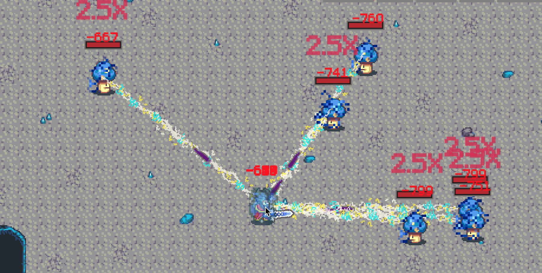 This week's highlight is the delayed attack/heal/skill landings, ie. hits - each projectile has it's own speed, some weapons have special projectiles, in time weapon speed (for initial take off) and dodging (for physical projectiles) will get into the mix too. You can now observe an incoming magic projectile and erect your reflective shield, it's pretty fun watching the projectile reflect back and forth when it happens :)