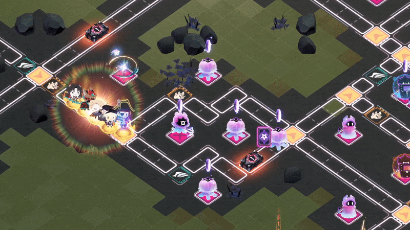 Navigating through these battles isn’t just about your offensive line-up, though. To secure victory in each stage, you’ll need to outwit the defenses which take the form of enemy “towers”. Unlike the traditional single-path approach often seen in tower defense games, we’ve spiced things up with multiple pathways in each stage, adding a twist of strategy and unpredictability to your game plan. Choosing a path could be the difference between resounding victory and crushing defeat, so make sure you strategize it well!