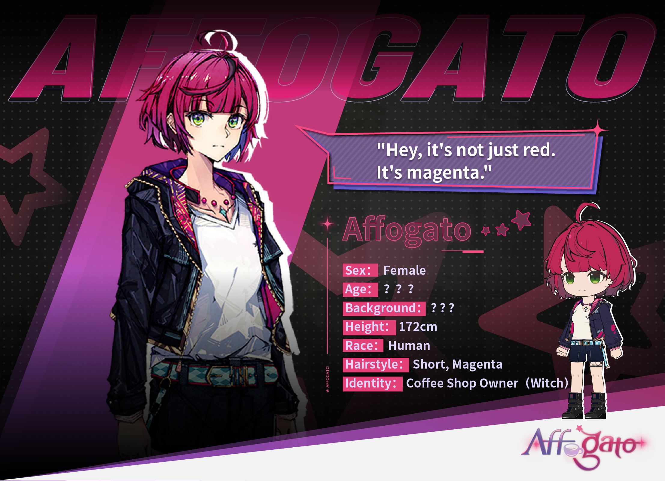A - Absolutely! The plot revolves around a good witch called Affogato who visits a magical city called Arorua which doesn't ever see daylight and decides to call it home. There, she becomes the boss of a cafe and holds a double identity as a demon buster, helping her customers defeat their inner demons and overcoming personal challenges.