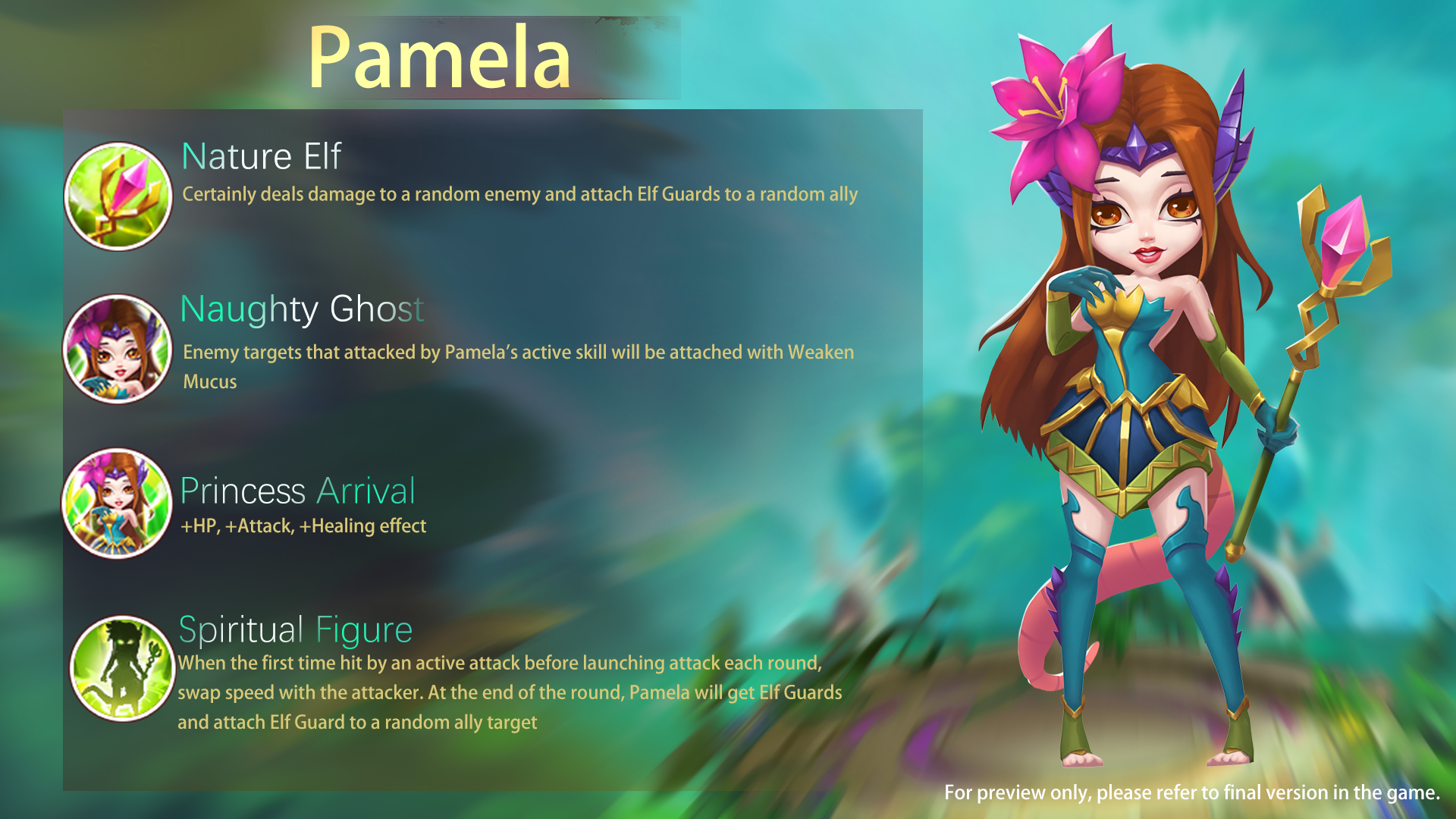 Greetings summoners, We have completed this week's update, Now you can claim the reward at Mail. 1. Added an Elf Therapeutic hero - Pamela 2. Shelley, Leah, Terok, Tifa, Udar, Siren are added to the elite 5-star hero shards and super lucky roulette Please re-enter the game to ensure the update to take effect If you encounter any problem while playing our game or have any suggestions, please feel free to contact us by inbox