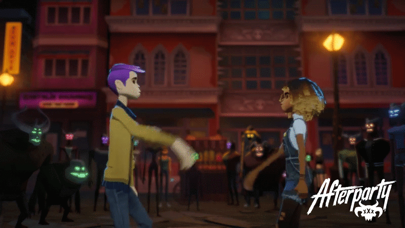 First, it was imperative to our crew that you embody not one, but two characters via Afterparty’s leads, Milo and Lola. Over the course of your night in Hell, you’ll explore the peaks and valleys of long-term friendship in ways that haven’t been seen in games before.