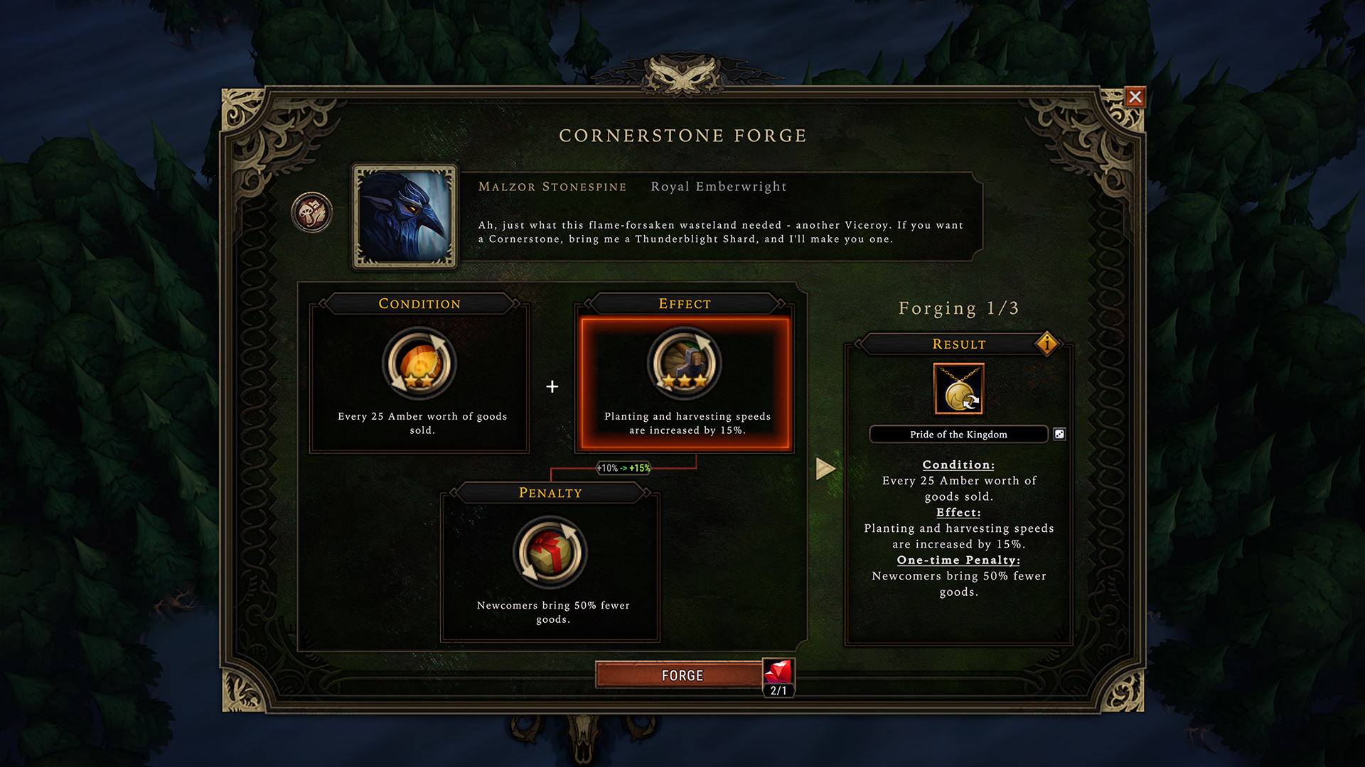 - The Cornerstone Forge UI panel has been updated. It's now a full-screen panel like the Forsaken Altar.