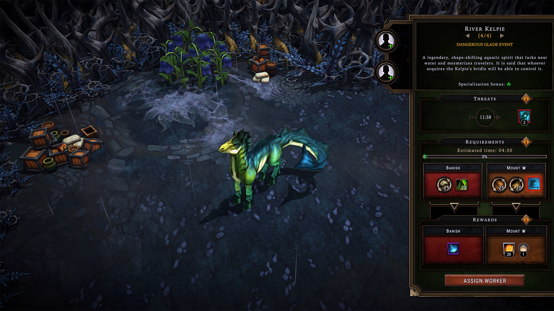Let's talk about the new content first. With this update, we're introducing a new dangerous glade event - the River Kelpie. It's a legendary water demon that can mesmerize unsuspecting villagers and lure them to their doom. Along with this event, we're also adding a new type of working effect and reward… but we won't spoil anything here. It's best if you find out for yourself.