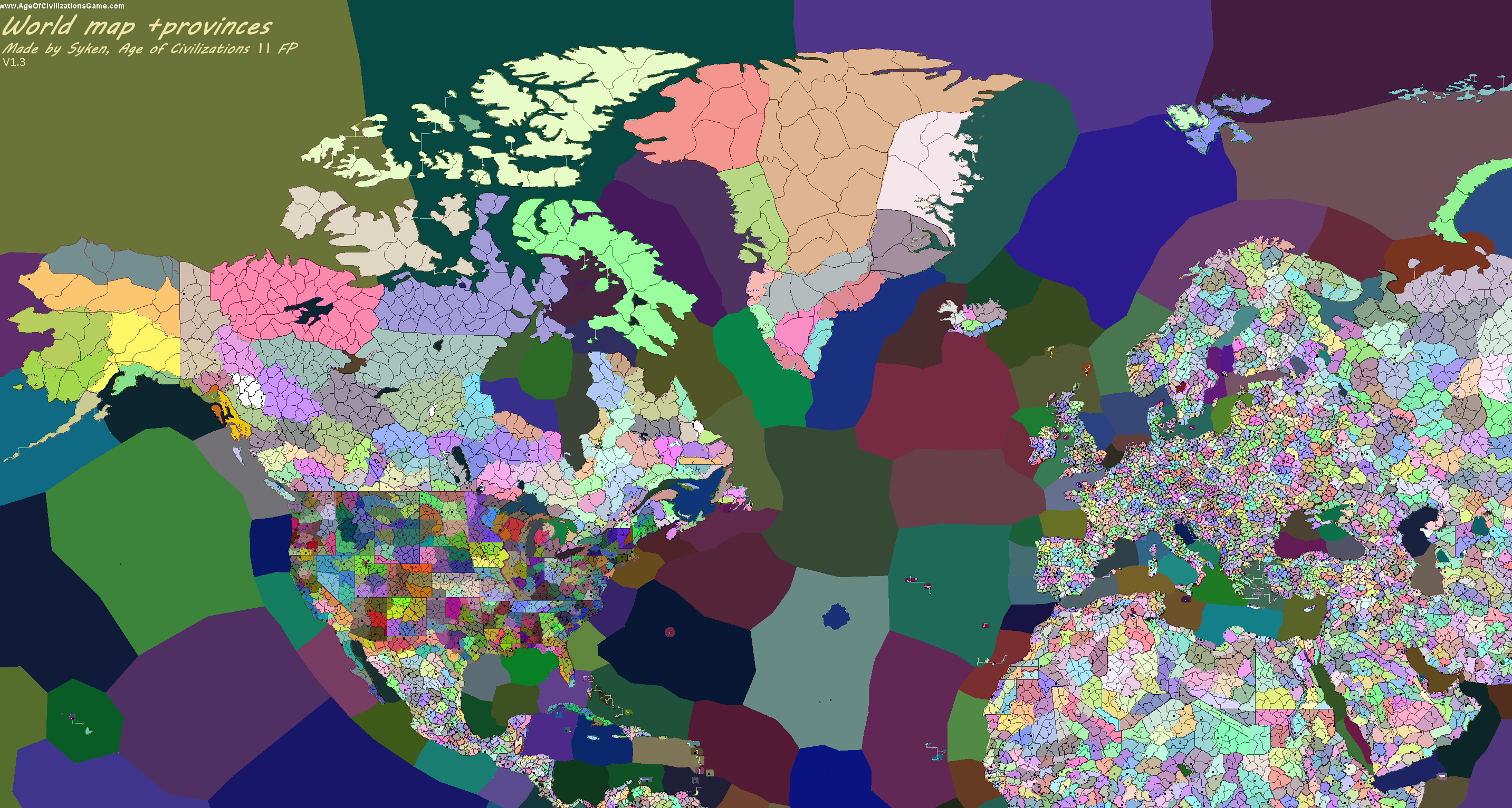 The newest map for Age of Civilizations II has over 1787 provinces, it's one of three available maps For AoC II.