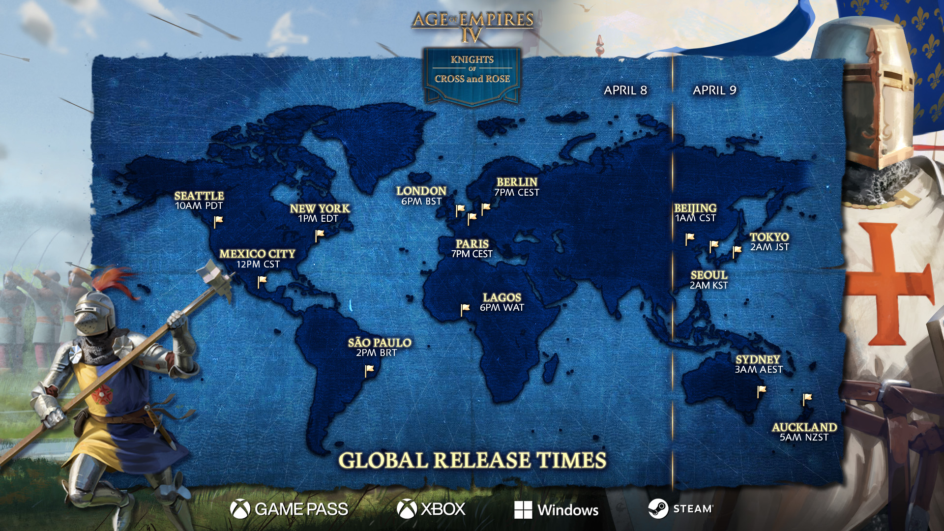 We will be launching our Season Ten update alongside our newest expansion, Knights of Cross and Rose! This DLC features new variant civilizations for the French and English, as well as a new game mode and ten maps.