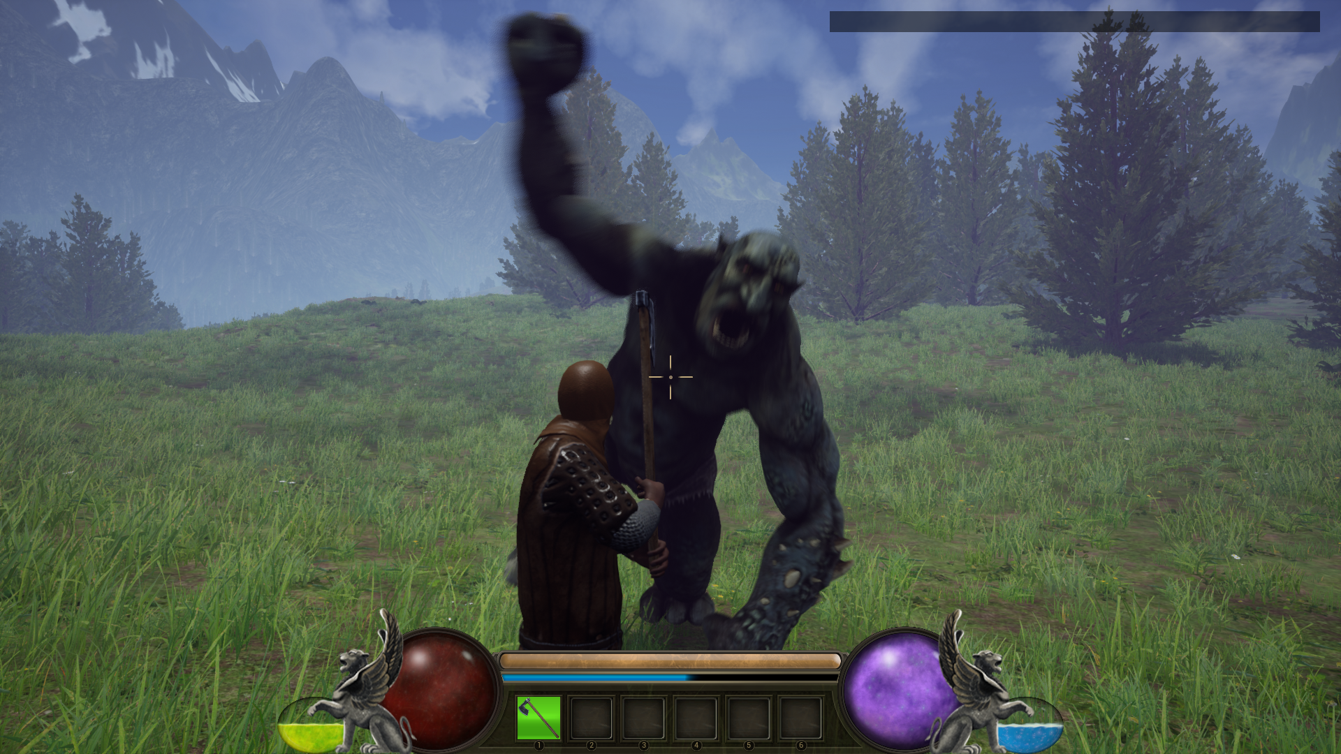 1. Changed quiver model. 2. Fixed arrow models in quiver showing number of arrows left when less than 6. 3. Tweaked Nav mesh to only be dynamic in Mines procedural level, giving back about 10fps in base level. 4. Fixed archery target not triggering quest end. 5. Fixed Missing right attack on melee weapons. 6. Changed Melee Quest reward to stone axe. 7. Changed Stealth Kill quest reward to 2 cooked meat, 2 boiled water. 8. Added NPC enemies "Ogres", "Skeletal Mage", "Skeletal Warrior" 9. Added magical protection spell. (Deflects Skeletal Mage attacks) 10. Added Oger hide (Skinnable with stone knife)