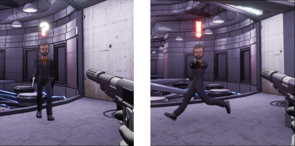 This new system makes stealth a much more viable option for getting through an area. Before this update Goons gave no indication of when they were about to enter their alert state, but now everything is a lot clearer. In the future I'll likely add this sort of system to the other enemies as well!