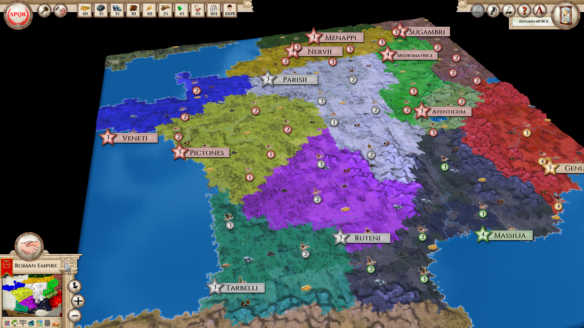 Then, around a half year later, I discovered Aggressors: Ancient Rome. I played various games in different scenarios, loved all the possibilities you get in this game, and started to create my own scenarios. I loved the Ancient Mediterranean map in Aggressors; however, I missed the upper part of Europe; I especially would have loved to meet the Gauls as in the old games mentioned before. There were a lot of scenarios, covering the battles over the River Rhenus, the British Isles, but the Gauls were missing. So, I decided to close this gap. My next idea coming to mind was to play “The Gallic Wars” from Legions Gold, but with all the advantages from Aggressors: Ancient Rome (A:AR). I just imagined my beloved scenario with the powerful AI from A:AR, all the new diplomacy possibilities such as Defense Pact, Confederation, trading, and so on. I was sure, if I can shift this map to A:AR, I will be able to play it in a much more historically accurate setting and get a way deeper, more narrative experience.