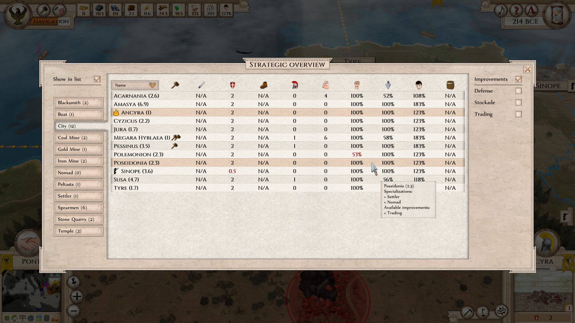 But what about resources? That’s tricky. Remember, the game needs to be balanced, so the numbers and placement of the resources had to be decided with care. But you know, Aggressors’s main scenario has been balanced so well by its developer. Why not rely on tested solutions? I counted the number of resources in some randomly generated games and main scenario and came with 25 as a number of mines of each type on the map. I aimed to place them evenly on the map but also considered the strategical importance of some regions in that Era. So islands got some resources to make the invading effort worthwhile. Also historically, some regions like Egypt, Italia, or Asia Minor were richer than others. That’s why excess of gold was placed there.