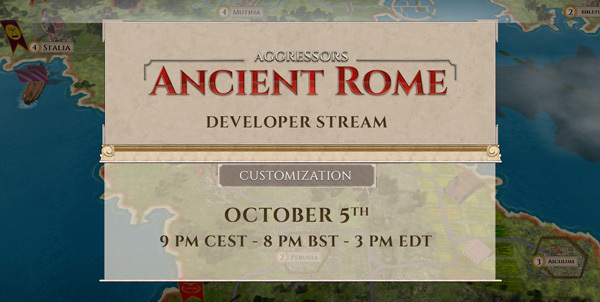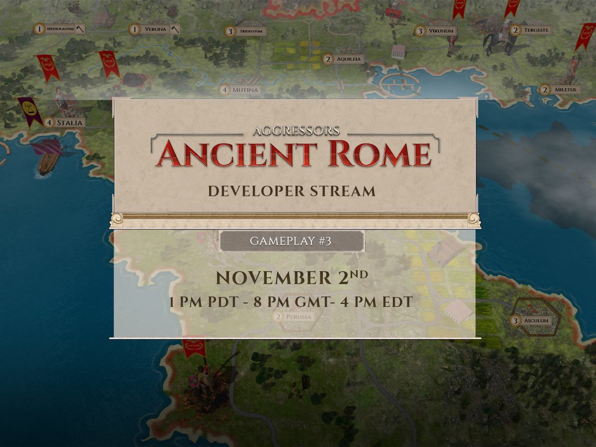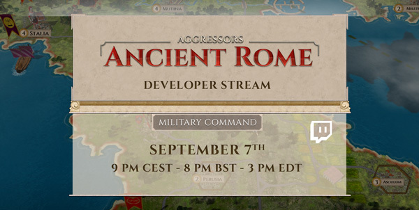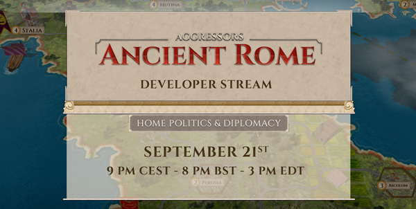 This Friday we are going to start the first stream of a series of developer streams for Aggressors: Ancient Rome.