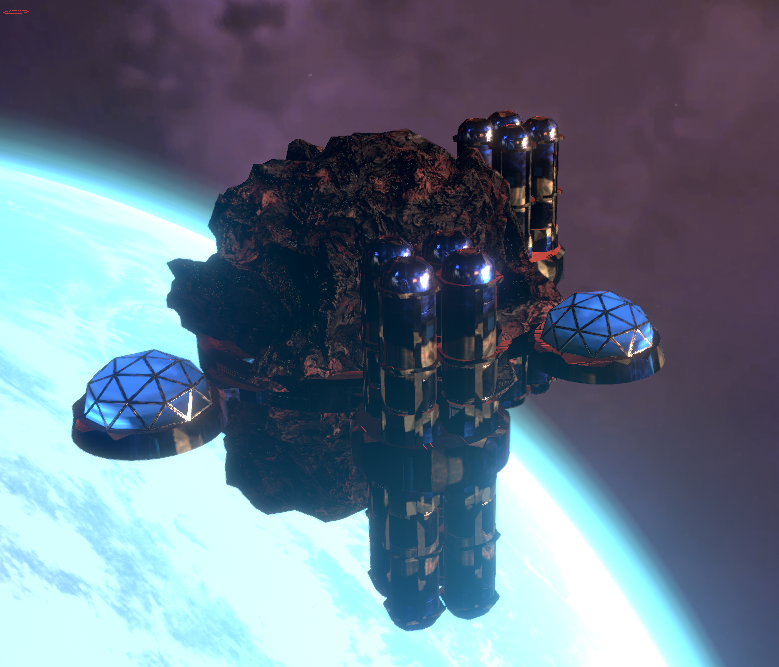 One of the cool things changed in this one is the AI Command Stations, which you see ALL OVER THE PLACE. They were some of my much older art, where I was trying to get a sense of large scale without having repeating elements or using greebling (which is how Star Wars makes things feel large). Normally in not-outer-space, you use horizon lines, distance fog, and other things to give a sense of scale. None of that really exists in space, although in the last few years I have discovered that using a smaller camera FOV actually does give some of the benefits of horizon lines (making things seem larger than life), while also avoiding lens distortion of spherical objects (aka all the planets don't turn into ovals near the edge of the screen). At any rate, there was a great discussion about those sorts of techniques, and things that I've learned that work well or poorly, in our discord. Links to the relevant parts are in the release notes. The new command station started out being something I was iffy on after my initial paint work -- I came back after lunch and noted that now I hated it -- but after working with it in my more modern shaders, the result is actually really killer. Here it is: