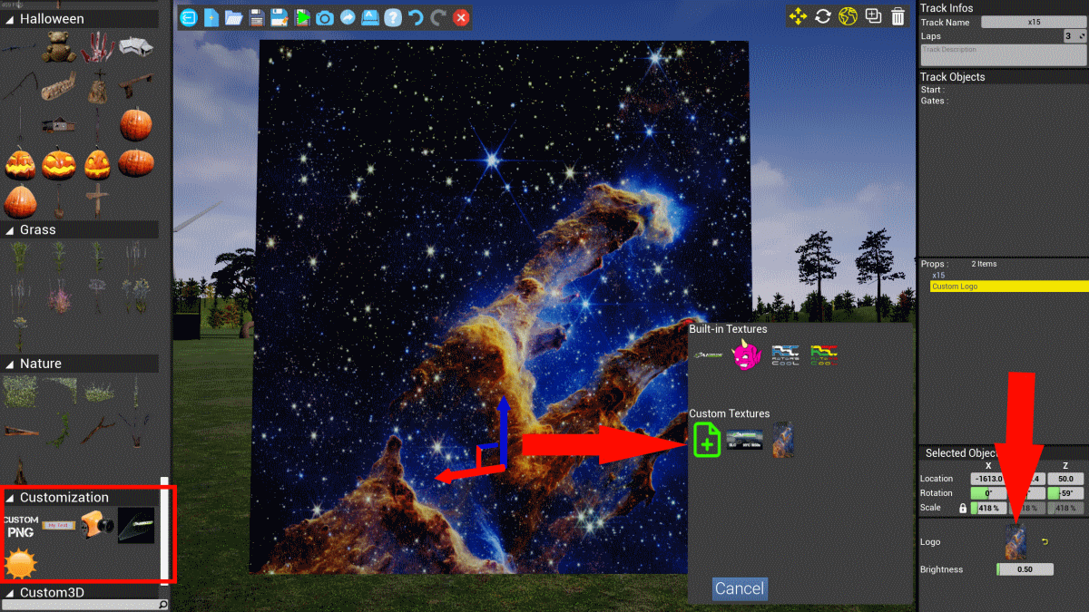 Editable Natives items : except for most trees, most native items on the map are now user editable. Delete, duplicate, move or resize any native item. Warning : With great power comes great responsibilities, natives items are often way less plug & play than the items available in the left panel. Don't forget to use Undo for any issue.