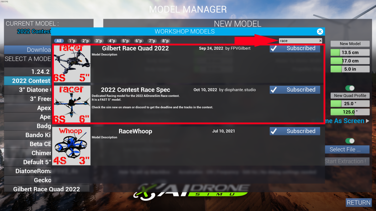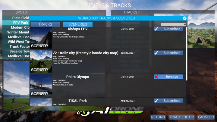 Download Drones, Tracks & Sceneries directly from the game.