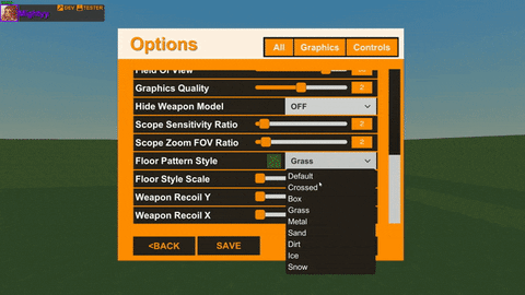 -Added new floor textures including (grass, metal, sand, dirt, ice, snow)