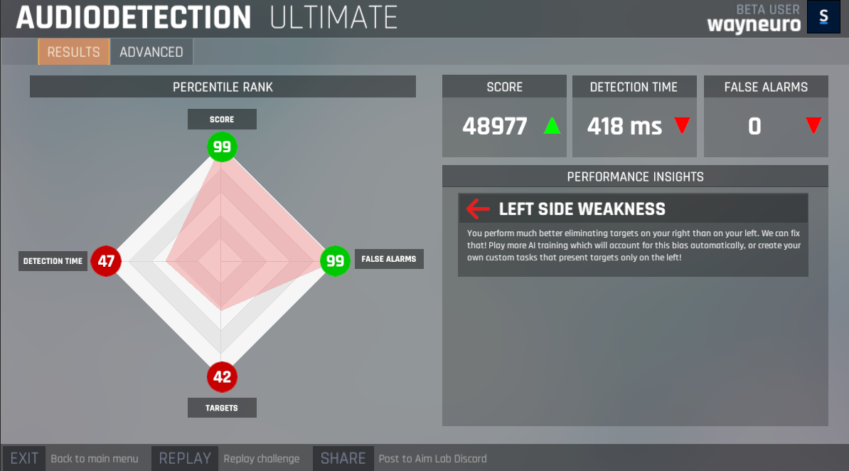 Assessment - This is where you go to flex and show off your skill, tasks played in this section will count towards leaderboards and will be analyzed in the main menus score card as well as the data profile.
