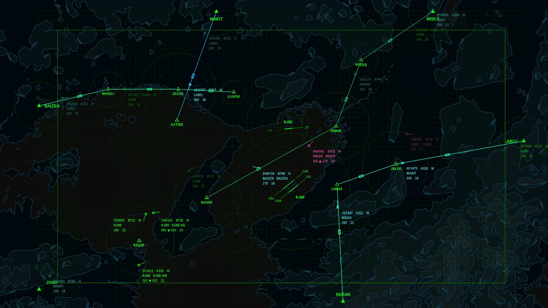 Conflict detection also improved, cross conflicts can be picked-up better. Since the performance of conflict detection is really depend on the coverage and scan rate of radars, the difference of conflict pickup time between map are huge. When you feel the warning system is overreacting, you can decrease the value of look ahead time to reduce the warnings.