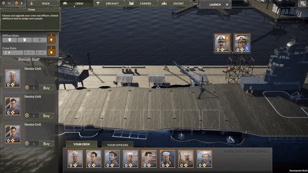 Crew and Defence In this dev log, we will take a look at the crew members working on your aircraft carrier and how to manage them. These people keep your entire operation running, but assigning them to do the right tasks will make a huge difference in how quickly things are done on the ship. We will also go into the topic of defence - a crucial tool in preventing damage from oncoming attacks.