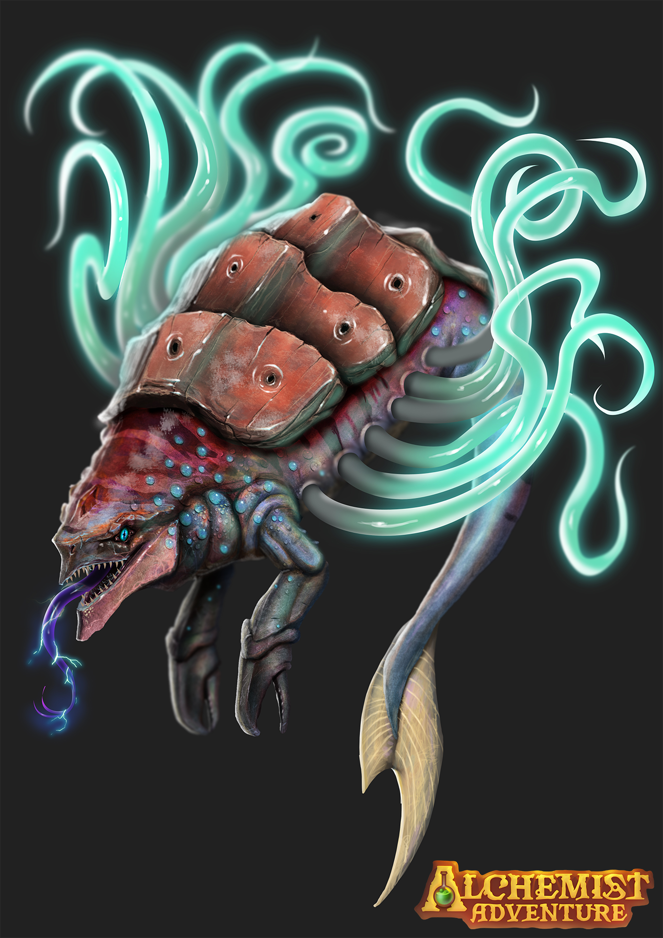 First up we have the concept art of the homunculi. Even with a quick glance, you can quite easily see the lobster/crustation influences on this particular homunculi, so it should be quite easy to guess what type of creature it is going to be and it's elemental affinity,