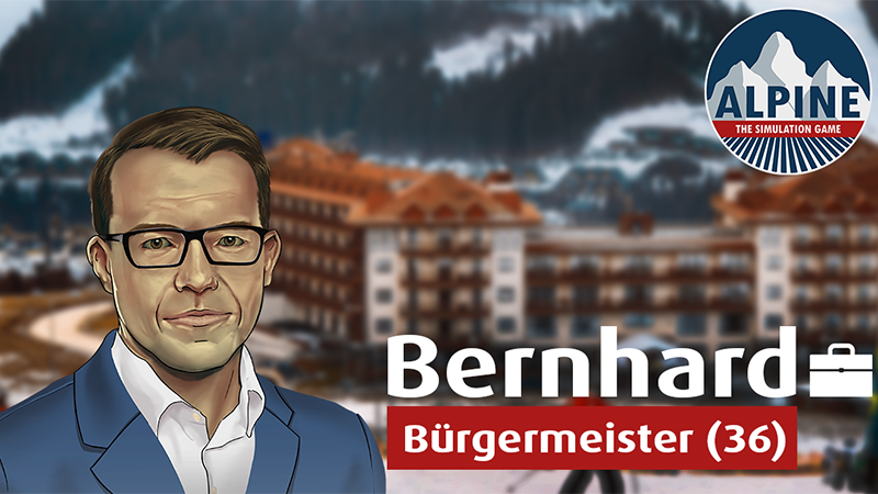 In the first picture, you can see Bernhard, the manager of the whole ski resort. He is 36 years old and the mayor of Oberbruck. Due to his young age, Bernhard does not have much experience in his profession yet. However, he is always optimistic and looking forward to your help with the extension of the ski area.