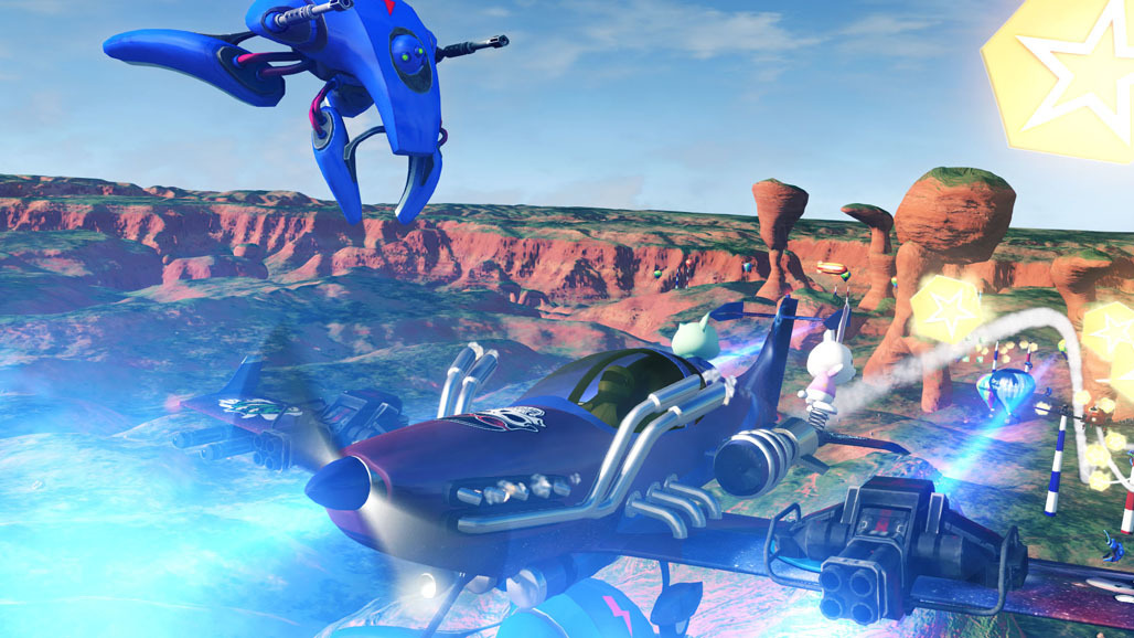 Throughout a large campaign, Grand Prix competitions and time trials, you will become an experienced combat air racer. If you’d like to compete against friends online or in split screen on your couch, you can join competitive online matches and build your MP rank.