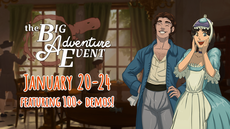 We're very excited to be a part of The Big Adventure Event! For those not in the know, The Big Adventure Event (the BAE) is an event on Steam that celebrates everything adventure-related. Whether it's slicing up monsters with a sword, or gossiping it up in 18th century Paris, there's something for everyone who enjoys a good adventure!