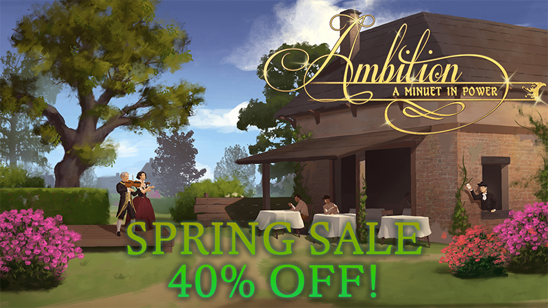 Any proper Parisian loves a good sale, so we come bearing good news. Ambition: A Minuet in Power is 15% off during the Iceberg Interactive Publisher Sale! This is our deepest discount yet, so if you know anyone who's sitting on the fence, let them know!