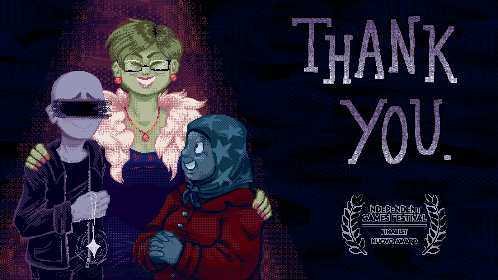 On the 23rd of January, I received word from one of the organisers of this year's IGF that An Outcry had been chosen as a nominee for the Nuovo Award. This was publicly announced on the 24th, and was so unexpected + caused me so much organisational work that I only now got around to making this post about it.