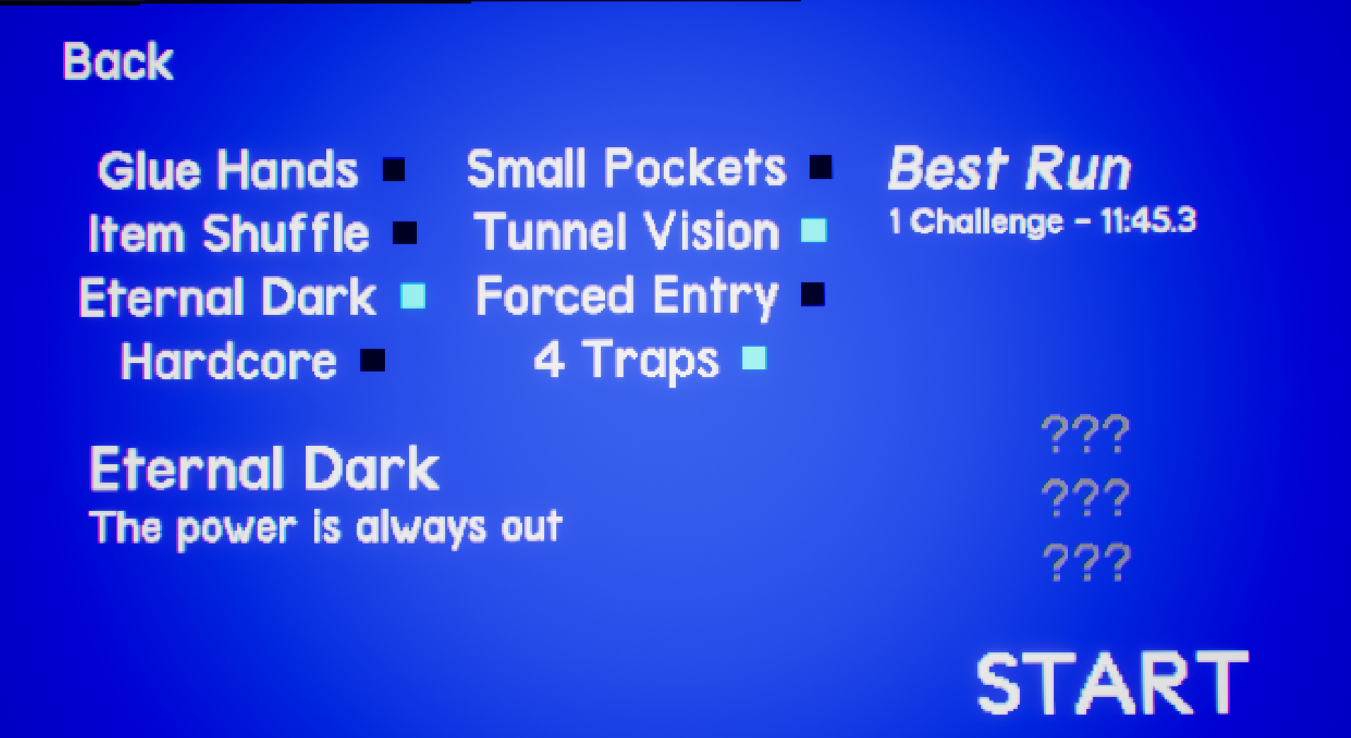 A power cut no longer occurs at the start of a run when skipping the intro. Because of this, a related achievement has been removed as well.