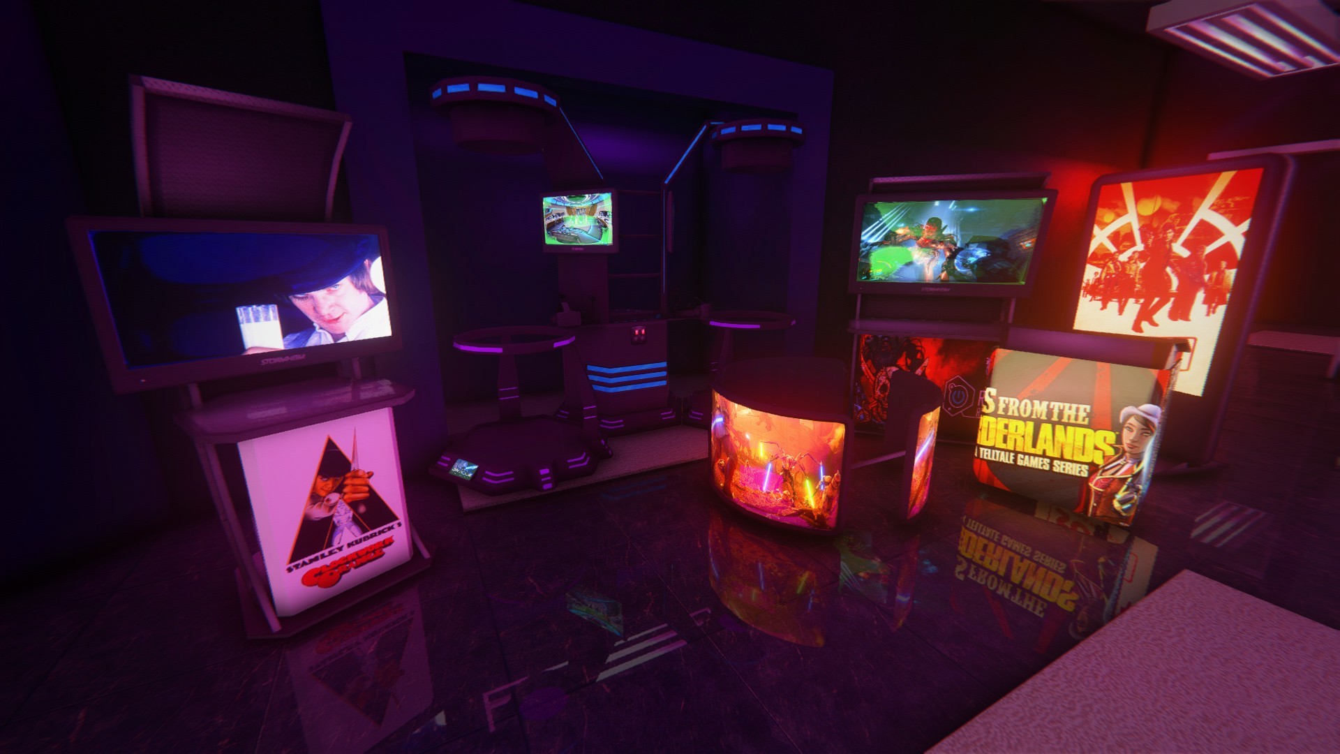 From left to right: Moon Kiosk, VRCade, Triple Force, Moon Kiosk Wide, Podium, Monolith.