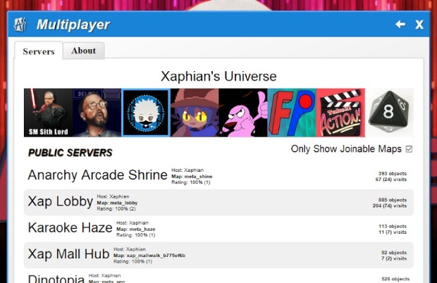 The server list can now be filtered by universe - so it'll be easier to find other servers by the same author by clicking on their avatar at the top of the server list.
