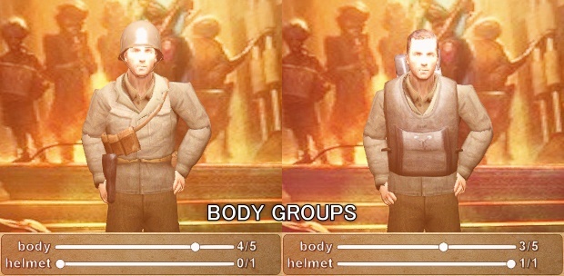 If a model supports body groups, they'll be listed in the new Body Groups tab of the Transform menu. Each body group has its own name & slider. Some body groups can just be turned off/on, while others might have many different values to choose from! Note that most models do not utilize body groups.