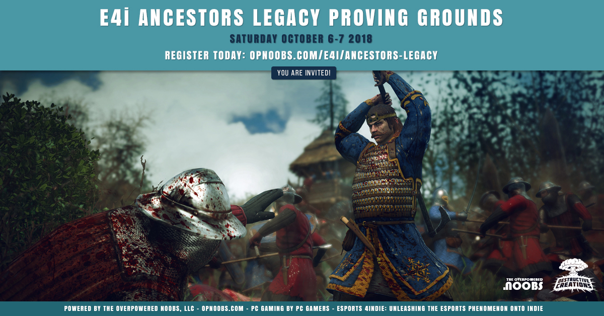 • Registration starts today. Here’s the sign-up link: https://opnoobs.com/e4i/ancestors-legacy • Our partners at AMD will be supporting us with kick-ass prizes.